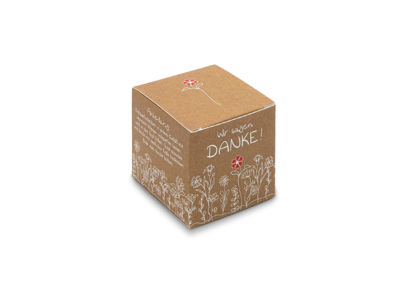 Das kleinste unserer Würfelsets ist direkt einsatzbereit und lädt dazu ein, eigene Blumen oder Kräuter heranzuziehen. Mit Ihrer individuellen Gestaltung ist es das perfekte Give-away, um Natur und Freude werbewirksam zu verschenken.